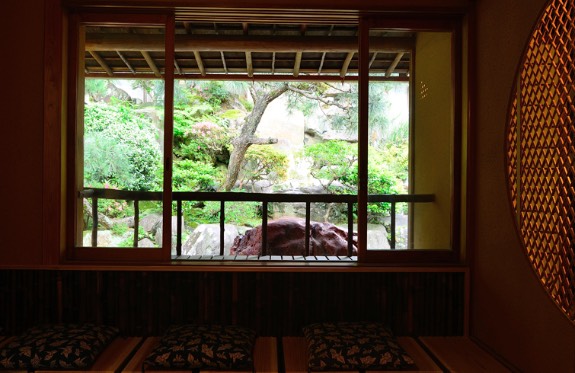 伊予の水石や本鞍馬石、由緒ある灯籠が立体的に設計されたあたみ石亭の庭は、さながら石の宇宙。この独自の世界を囲む庭木や流水は心地よい調べを奏で、鳥の声を調和し、四季折々の表情を宿し、静かに時間を刻んでおります。