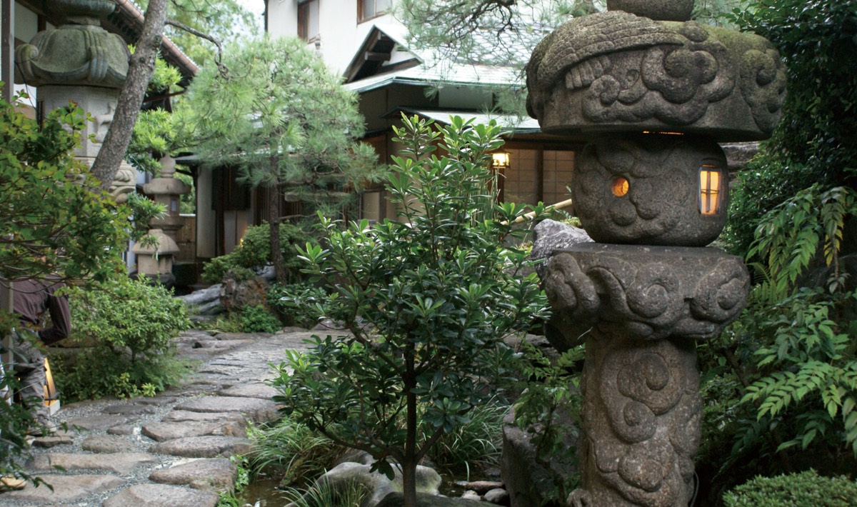 宿でのご滞在のひととき、個性ある石の庭や緑に囲まれた小径の散策は、