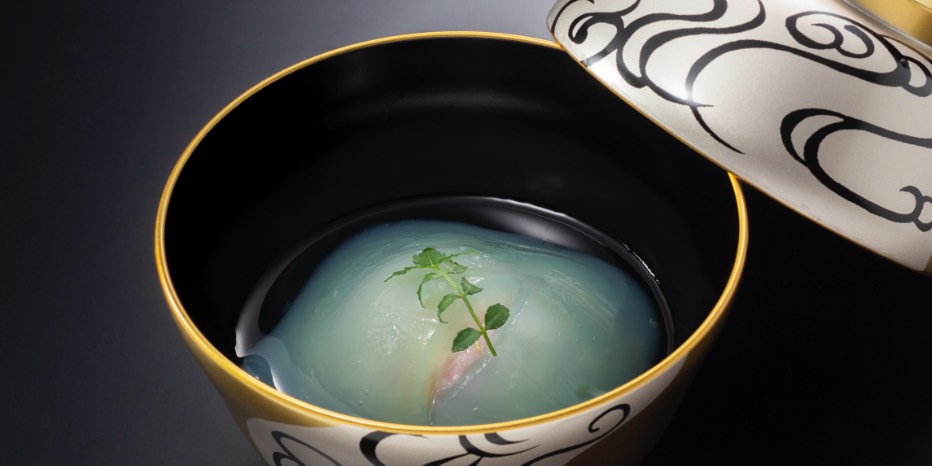 煮麺仕立て 鯛 占地茸 三つ葉 柚子